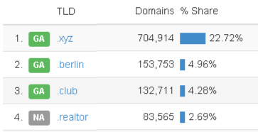 xyz域名是26个英文字母中的最后三个字母,相较于其他由单词构成的新顶级域名来说,“.XYZ”较为朗朗上口、简单易记且应用范围更为广阔。而“.XYZ”在开放大众注册后的表现更是强劲,首日即有上万的注册量,一周便成功登顶新顶级域名注册排行榜的首位,如今更是以250731的注册量稳坐“头把交椅”。