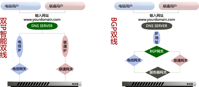 总之BGP双线与双IP智能双线各有千秋,各有优势,在解决中国南北电信问题上都充当着重要的角色。